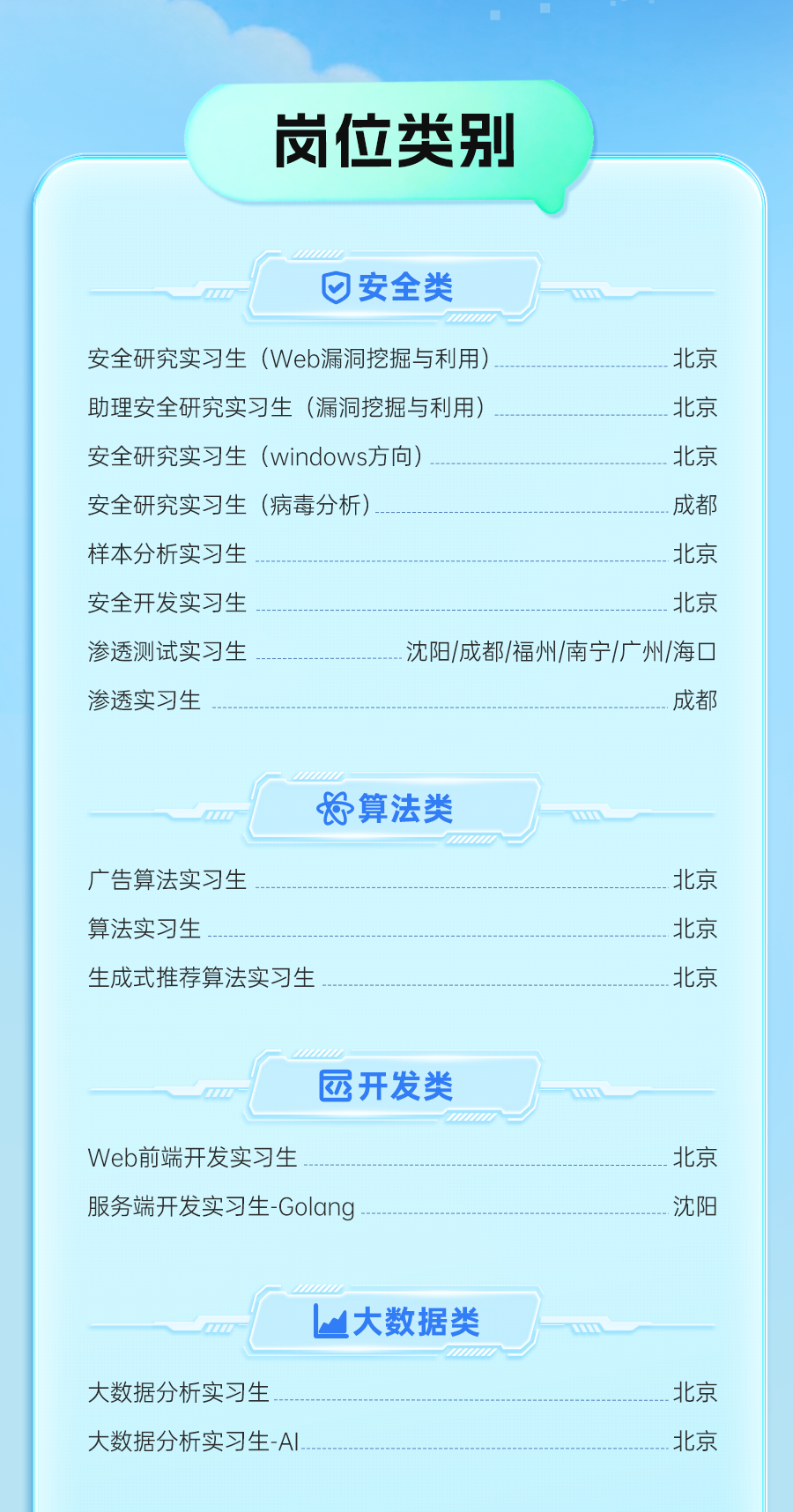 招聘速递 | 超多岗位来袭,360集团2026飞扬实习生招聘! 发布时间:2026年04月09日 来源:360招聘 作者: 浏览次数: 次 【字体:小 大】 具体详情点击原文查看↓↓↓超多岗位来袭 | 360集团2026飞扬实习生招聘! 分享到: 【打印正文】