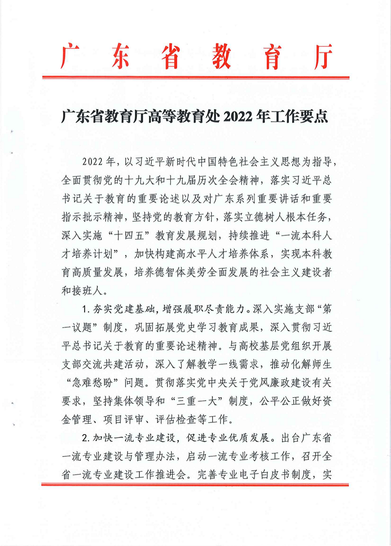 广东省教育厅高等教育处2022年工作要点