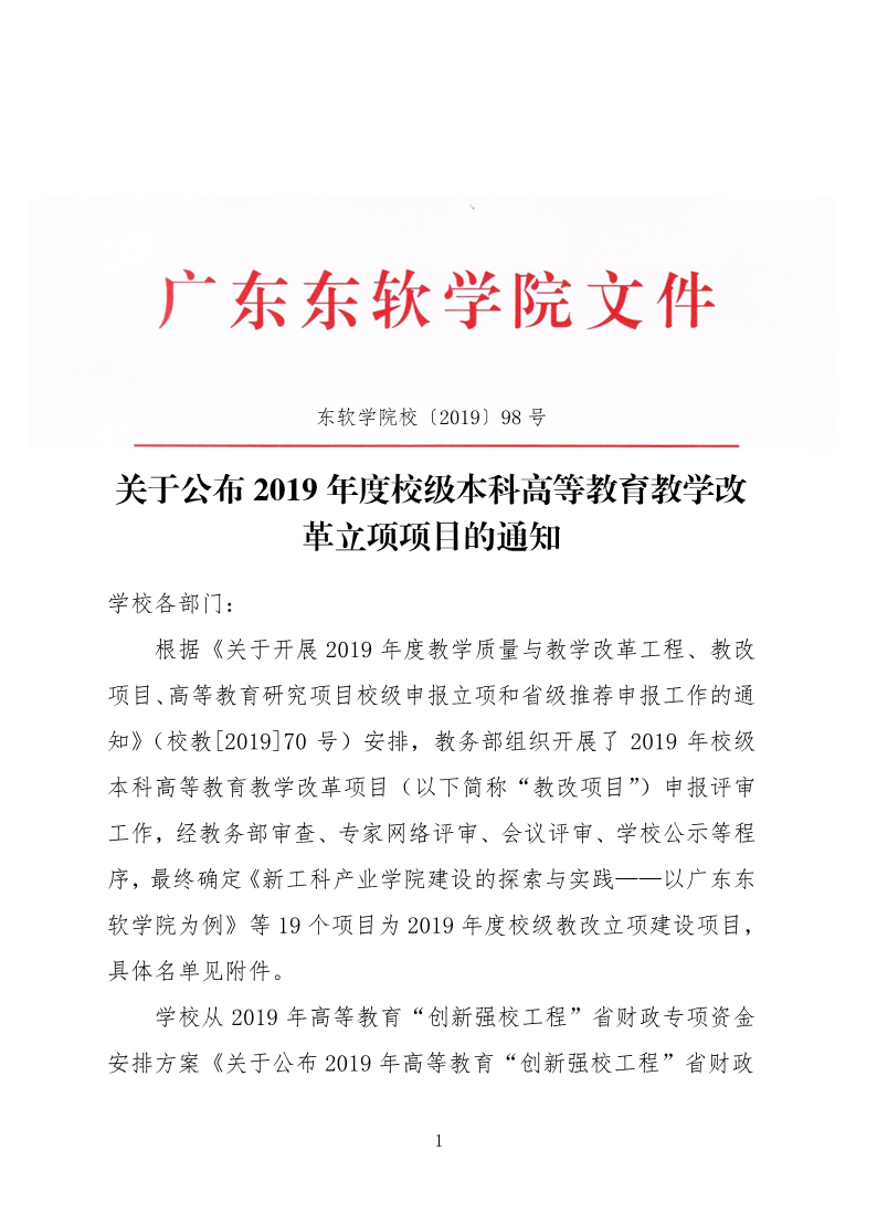 关于公布 2019 年度校级本科高等教育教学改革立项项目的通知