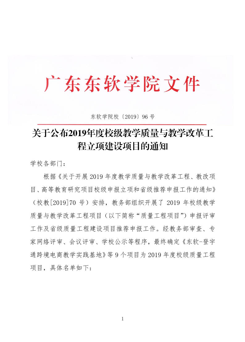 关于公布2019年度校级教学质量与教学改革工程立项建设项目的通知