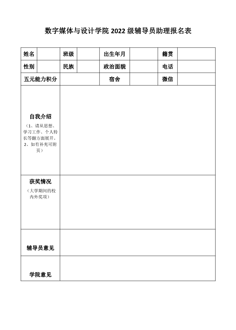 数字媒体于设计学院关于招募2022年新生辅导员助理的通知