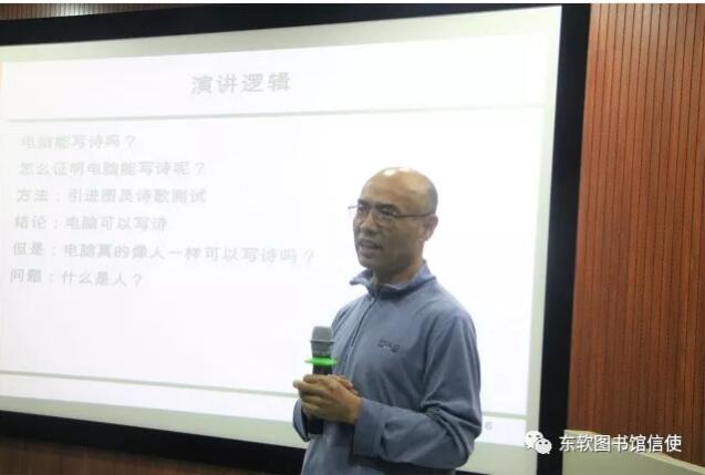 2017年11月15日,图书馆举行了第二十一期TED讲座,讲座主题为“电脑会写诗吗?”此次讲座特邀信息管理与工程系主任李连博士、教授为活动主持人,同学们踊跃参与,现场座无虚席。