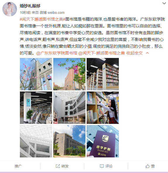 - 读者朋友圈转发指定活动推文,配文(图书馆的人和事或记录读书心得,推荐喜欢的书目)不少于50字,获得朋友评论(评论不少于8条)认同您的分享即视你完成任务。截图发小馆君确认,等待审核通过即可前往图书馆前台领取游学护照。