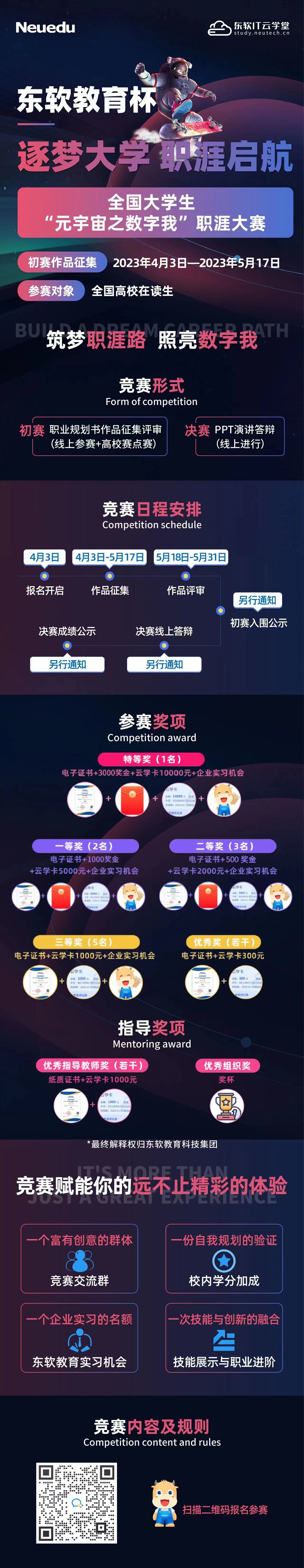 东软教育科技集团面向全国高校大学生举办“东软教育杯”全国大学生“最美校园”数字生活创意大赛和逐梦大学,职涯启航——全国大学生“元宇宙之数字我”职涯大赛,现就大赛有关事宜通知如下: