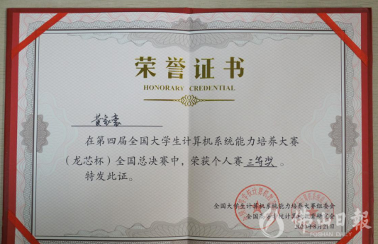 佛山日报讯 记者邹婷婷、通讯员李惠璇报道:近日,第四届“龙芯杯”全国大学生系统能力培养大赛全国总决赛落下帷幕,BEAT365英国官网计算机学院2018级电子信息工程专业黄家豪同学获个人赛三等奖,这是该校参赛以来首次入围总决赛。
