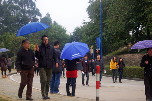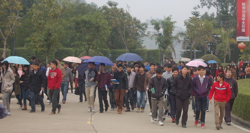 本网讯(记者 一湄)2月27日是2012年新学期开学第一天。濛濛的细雨丝毫没有阻挡同学们学习的热情,8点刚过,校道上已满是前来上课的同学,大家带着喜悦的微笑和青春的朝气,提着笔记本电脑、背着书包,奔向A座、B座、C座教学楼,以饱满的精神状态投入新学期的学习。