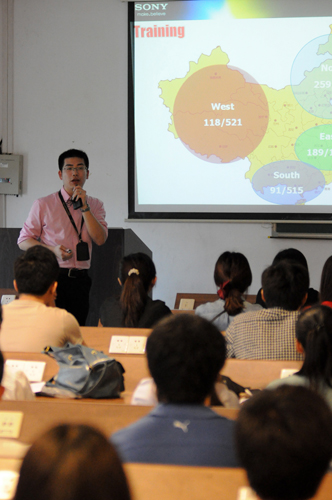 索尼员工向学生讲解索尼公司文化。(苏顺彬 摄)