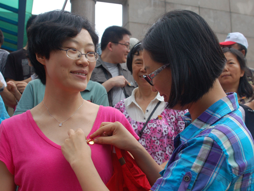 在东江纵队纪念馆前合影(卓尔吉一湄 摄)