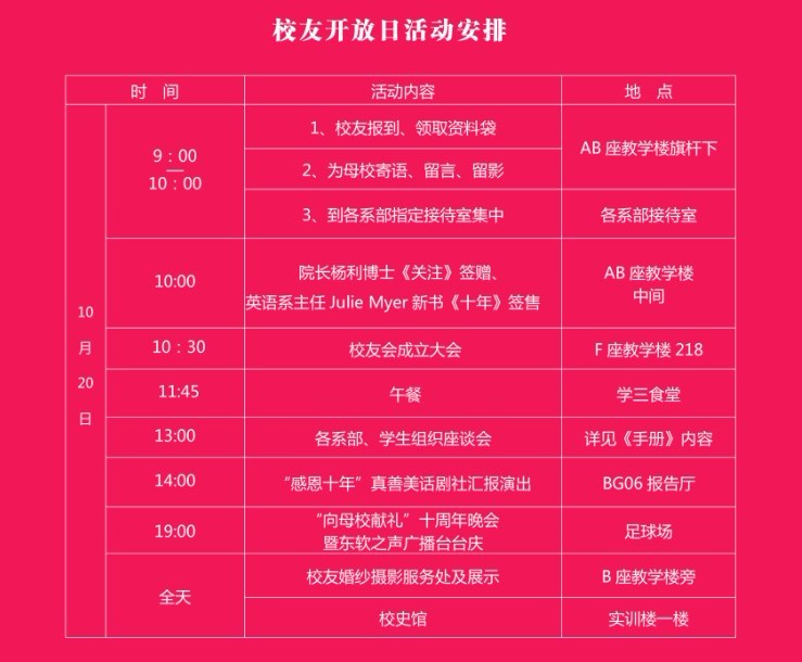 欢迎您莅临学院参加校庆十周年之校友开放日活动,感谢您对母校的关心和支持!为向您提供热情、周到、优质的服务,特对开放日的相关安排提示如下: