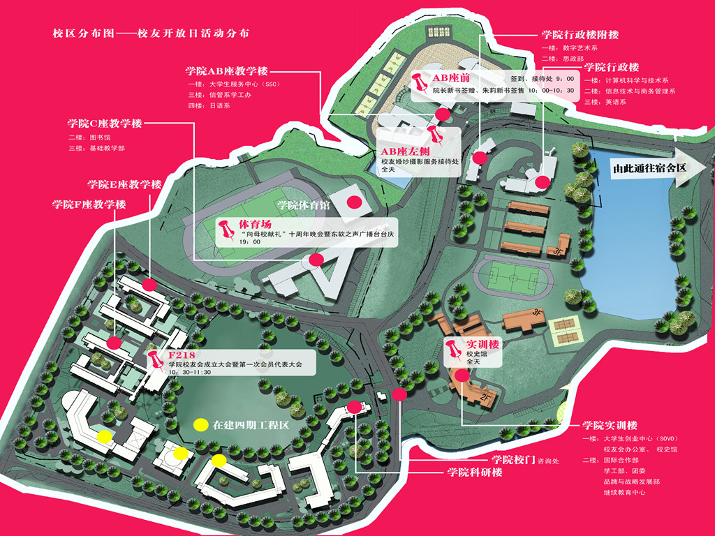 二、 校庆开放日的主要活动和流程请见《手册》内容,请您按照时间到指定地点集中,如对活动安排有任何疑问,请移步到AB座总接待处咨询;