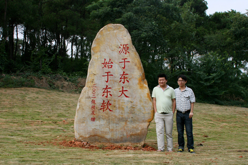 在北京工作的高东冉是本次活动的发起人,她在接受记者的电话采访时说:“我们是母校第一批学生,母校为我们提供了平台,我们对母校充满感情,值此十年校庆之际,我们想借此纪念石表达我们的心意。写上‘源于东大 始于东软’,这是对我们当时校园生活的纪念,也是我们对于学校的祝福。我们特别感激母校对于此次活动的支持,还为纪念石的安放挑选了最佳位置。校庆期间我及周围的校友们均有回母校参加庆典的想法,但大部分校友由于工作原因不能成行,为了弥补缺憾,我们有在北京组织校友与母校同步庆祝的想法。”陈昱、高东冉均是纪念石的捐赠者之一,他们是我院2002级的校友,而今他们已经成为眷属。
