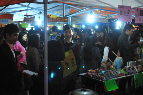 一间挂着“潮汕牛肉丸&牛肉饼店”牌子的摊位,生意似乎丝毫不受其他食品摊的影响,人满为患。来自南海区的邹清华女士是这间摊位的老板,她说:“经人介绍我知道了淘宝之夜,我想利用这个机会宣传一下自家店铺。从上个月开始为这次活动着手准备,许多学生对潮汕的牛肉丸特别感兴趣,我们希望让更多学生吃到潮汕特色食物。今晚的气氛很热闹,舞台上同学们的才艺表演充满活力,让我也感受到了学生们的激情。”