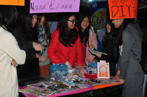 当晚的众多摊主就是我院在校生,他们在师兄师姐面前当起了“老板”。