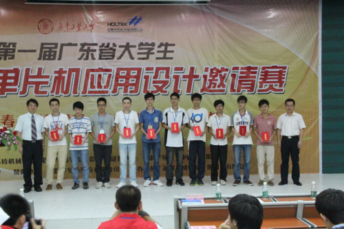 我院计算机系学生曹军、陈桂鹏、梁国伟同学组的基于HT66F50单片机的语音控制多功能小车荣获省二等奖;李海健、吴茂德、陈小曼、冯俊杰同学组的家居守护荣获省三等奖;曾慧霞、林氏美同学组的模拟路灯控制系统获得三等奖;我院同时还获得了“优秀组织奖”称号。