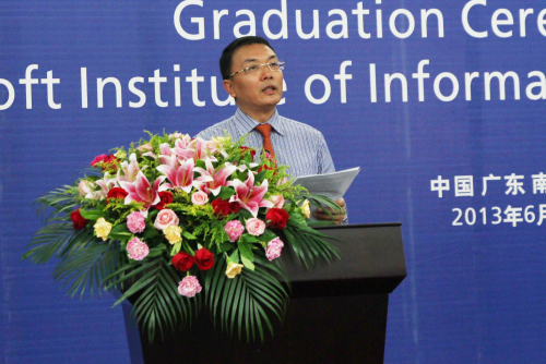 2013届信管系毕业生陈东明同学上台发言,他回忆着在母校学习和生活的点点滴滴,表达了对同学的万般不舍,对老师的真挚感谢,对母校的无尽依恋。