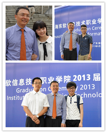 毕业典礼结束后,学院领导与毕业生合影留念,此时的东软校园,已然成为一片欢乐的海洋。一幅幅场景、一张张笑脸,从EF座到体育场,AB座到星光大道,再到阳光在线,在这条再熟悉不过的校园线路上,喜悦和幸福瞬间被传递,激情和热情同时重相聚,期待和祝福在每个人心中流淌。