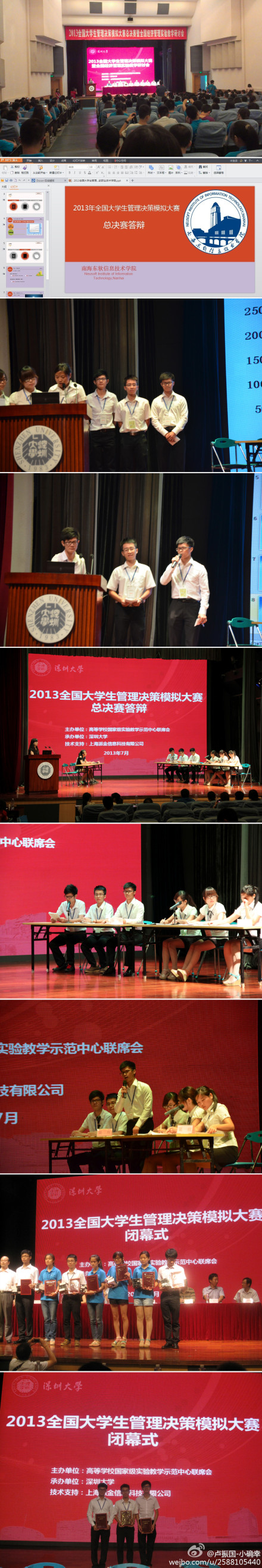 据悉,“全国大学生管理决策模拟大赛”由教育部国家级实验教学示范中心联席会主办,旨在大力推动全国高校经管类实验教学改革,使学生在实践中深入掌握和灵活运用企业经营管理及决策知识和技能。自2009年以来,“全国大学生管理决策模拟大赛”已连续举办五届。