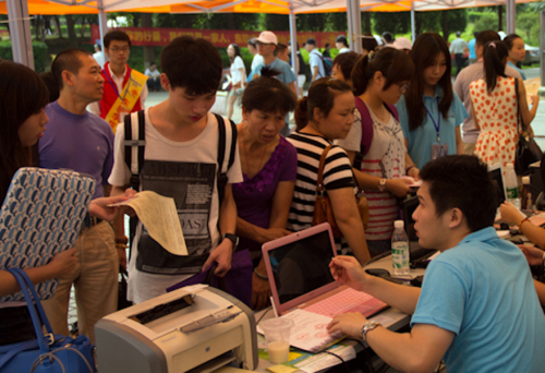 在快速报到通道,余海滨同学对记者说:“累不累已经没有关系了,我们要让师弟师妹们看到热情的东软!”一旁的李嘉斌同学则想对学弟学妹们说:“希望你们能够好好学习,享受你们的大学生活。”