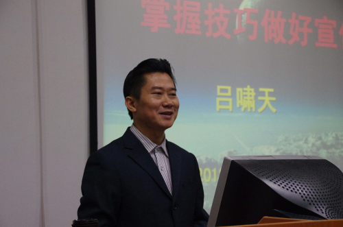本网讯(记者 陈亨彦)12月4日下午,《珠江时报》资源记者吕啸天做客我院,在实训楼2101教室为同学们举行培训——《掌握技巧做好宣传》。这是《东软学院》报编辑部为进一步提高校园媒体学生团队的整体素质,规范和提升校园新闻质量而组织的系列培训之一,为了让更多同学有机会与资深记者面对面交流,编辑部向学院各组织承担新闻宣传任务的学生发出了参加培训的邀请。