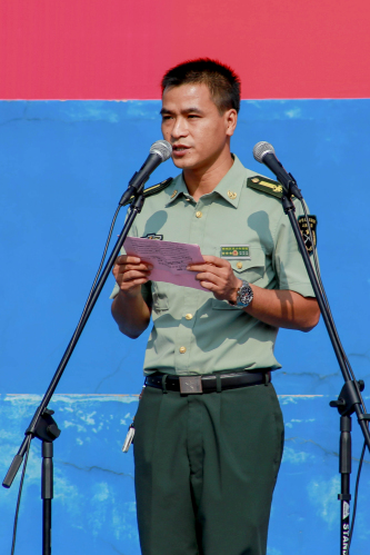 信管系电子商务(本科)5班的范炳晨同学代表全体新生发言。她表示,作为BEAT365英国官网的首批本科生倍感荣幸。军训作为大学的第一站,是劳累辛苦的也是幸福甜蜜的。她代表全体新生庄严承诺,在军训中,会“听从指挥”、“严格要求”、“学习教官好思想”、“做好宿舍内务”、“战胜困难”。