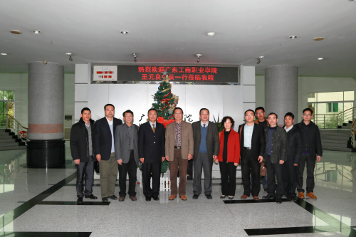 本网讯(记者 罗修坤)12月26日上午,广东工商职业学院王元良校长一行莅临我院,就办学模式、升本经验等方面与我院领导进行友好交流。我院左斌书记、刘春雨副院长首先陪同王元良校长一行参观了D座科研楼,图书馆,嵌入式实验室、计算机网络工程实验室等实验室,优美的校园环境给各位来宾留下深刻印象。