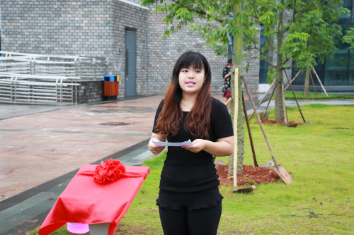 随后,毕业生代表2012级室内设计3班的齐宏卓发言,她感谢恩师的栽培,感谢同学们的陪伴,她说:“我们从一棵棵小树苗,被老师辛勤培育成一棵棵迎风招展的小树,我们必在东软的陪伴下变得越来越强壮。”