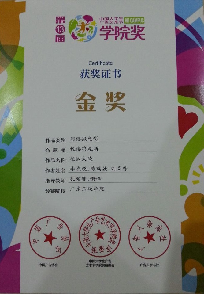 2015年7月25日—7月26日,由中国广告协会主办、广告人杂志社承办的第13届中国大学生广告艺术节学院奖颁奖盛典在北京中央电视台梅地亚中心成功举办。