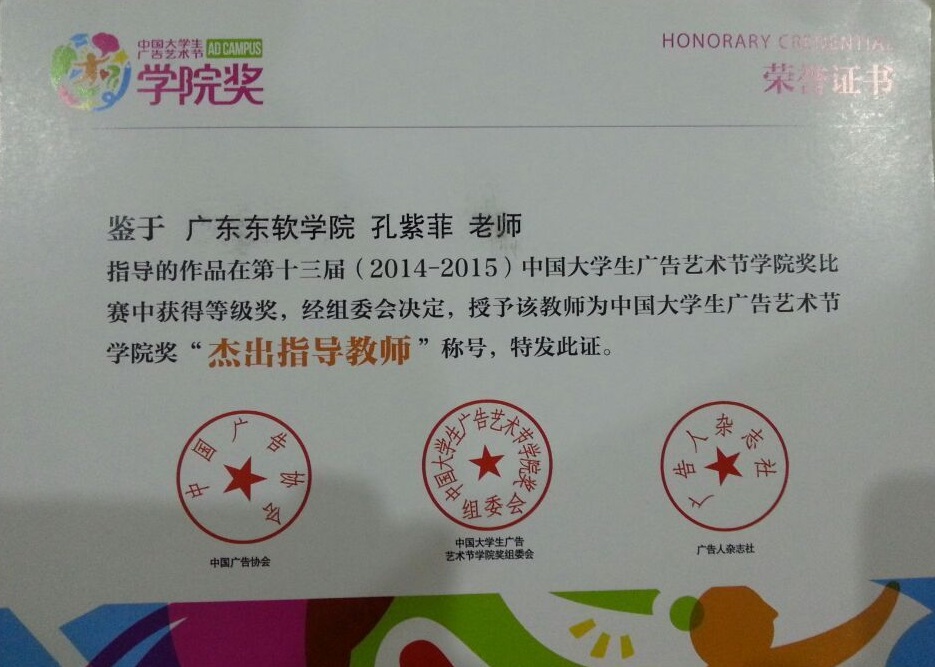 数艺系学子喜获中国大学生广告艺术节学院奖金奖
