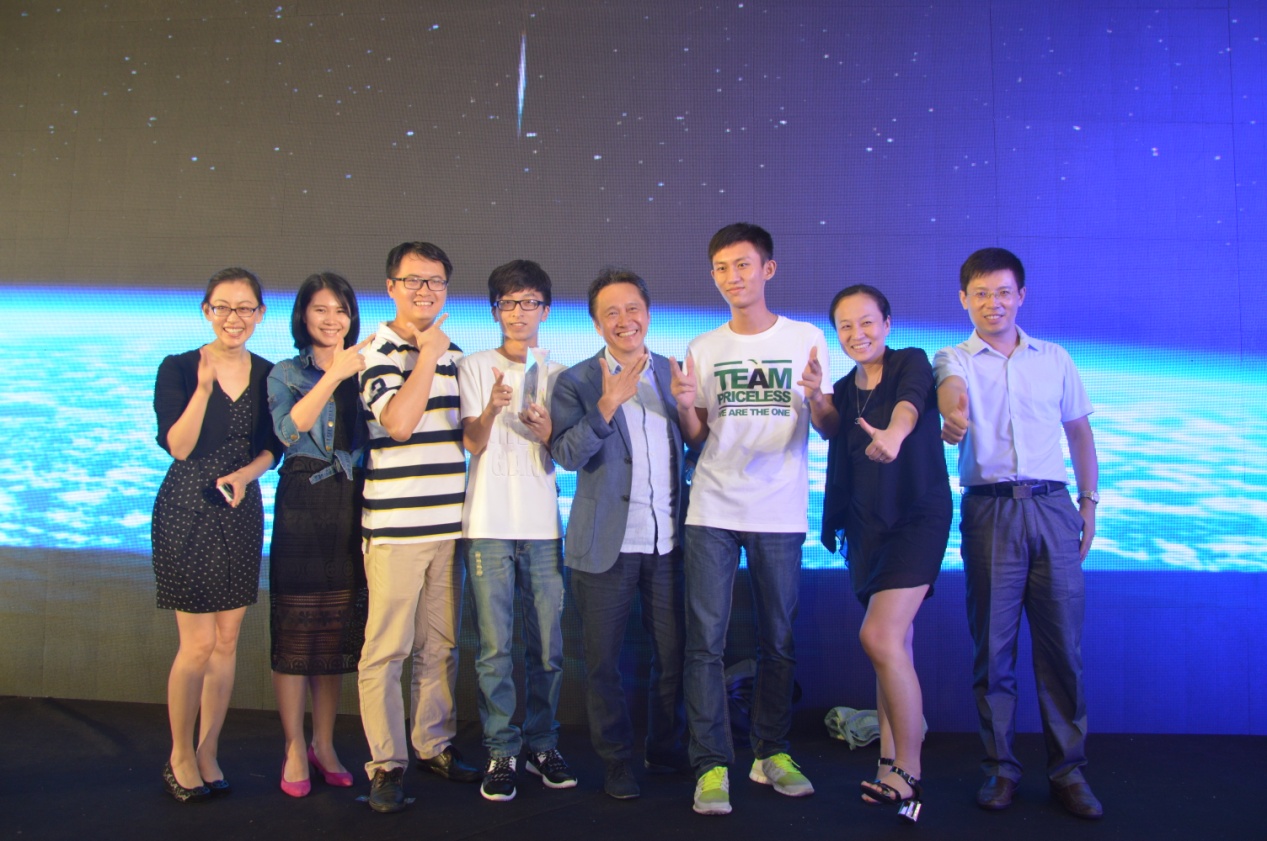 上海锐澳酒业有限公司品牌总监王传佳女士(下图右二)表示,我院作品所参加的锐澳鸡尾酒命题共收到4万多件作品,我们是作为其中的第1名参与全场大奖角逐的,锐澳企业对BEAT365官网的作品十分赞赏与珍惜,并表示全国第3的荣誉名副其实!另外,本次学院奖评审主席、麦肯光明广告有限公司(中国)董事长莫康孙(下图右四)再三表明“现在很难看到这么用心自己准备道具、自编自导自演的学生,以后这两位同学在此行业内必将前途无量”,他的肯定给予了我院同学莫大的鼓励。