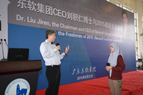 东软集团董事长兼CEO刘积仁博士与2015级新生举行见面会