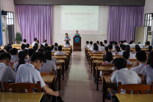 我院“名师进校园”被列为该校文化节活动之一,科研管理部部长李建辉博士做了专题为“架起通往大学科学研究之桥”报告,给中学同学带来了互联网+时代的最新核心科技信息。与会同学热情高涨,踊跃发言并提出不少科技方面的问题,李博士风趣幽默的语言风格和有针对性和学术性的回答使全场折服,纷纷致以热烈的掌声;报告会后还有不少“科学迷”跟出会场追问专家,这种锲而不舍的求知精神让各位领导和老师赞叹不已。