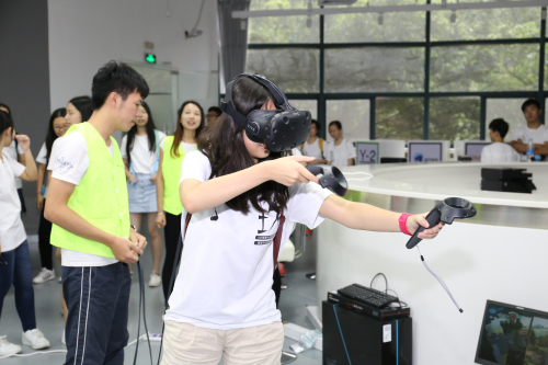 介绍会结束后,学生及家长们在负责老师和志愿者的带领下秩序井然的开始前往主教学楼、图书馆、实验室、特色教学基地、大学生创业中心、饭堂、宿舍参观。各系部的教学成果展覆盖了C座教学楼的走廊,吸引了许多家长驻足观看。在创业18MALL中开放的VR体验馆更是吸引了大批的学生和家长跃跃欲试。VR目前是最新也是最热的技术之一,未来的应用非常广泛,比如教育、医疗、培训、电竞、游戏、直播等,发展前景让人充满了想象。东软学院作为IT技术应用型的本科高校,一直追踪和重视新技术的发展,将技术的最新成果引入高校,来保持学校专业教育的鲜活。另一方面,VR也是一个创业的好项目,其产业发展方兴未艾,带来很多的创业机会。东软的校园也是创业园,比如:学生宿舍可以看做创意空间,实验室可以做为创客空间,图书馆可以做为创业智库,还有大学生创业中心(sovo),东软华南IT创业园等,形成了一个完整的创业链条。学生在东软不仅能受到创业教育,更能学到创业技术和得到创业项目的支持。