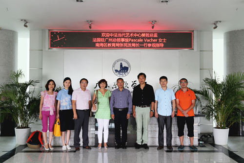 本网讯(通讯员 王蓓蓓)8月24日,中法当代艺术中心艺术总监樊哲先生、法国驻广州总领事馆文化参战Pascale Vacher女士、法国巴黎学院里昂分院教育主管Jacqueline Hemmer女士、南海区教育局局长张苑发局长等一行莅临BEAT365官网参观交流。学院院长杨利博士、数字艺术系主任王学伟教授、国际交流与合作部部长刘鑫等参与接待。