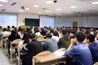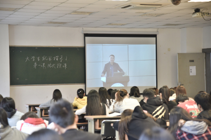 院长杨利博士为2017级本科生讲授《大学生就业指导》第一课