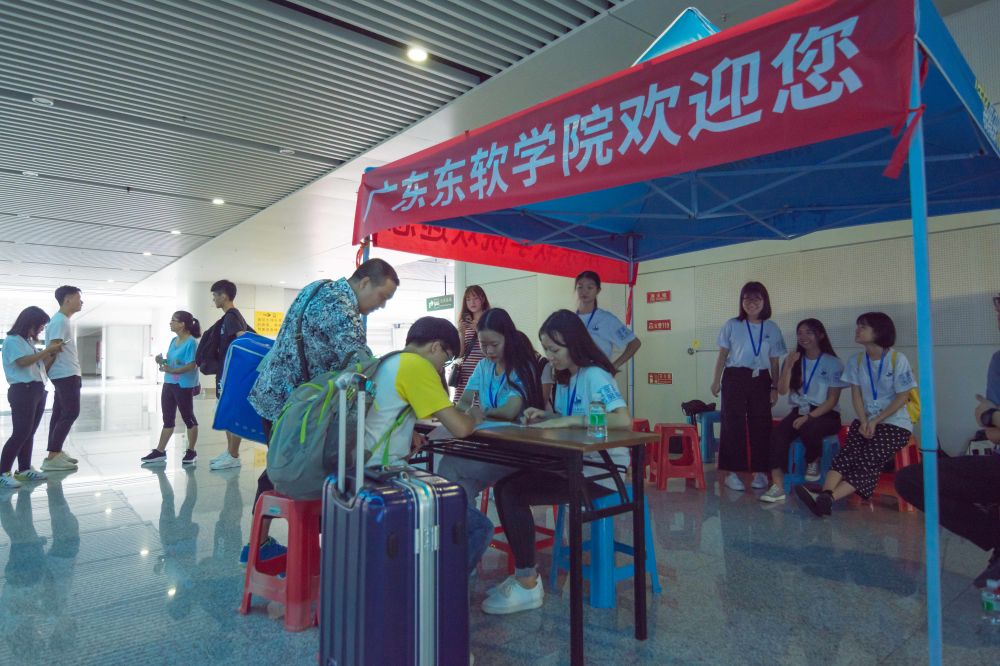 为迎接新生的到来,学校在佛山西站、佛山火车站、佛山粤运汽车站、佛山鸿运汽车站设立了接站点,并在学校体育馆、图书馆、学生公寓等地设立了新生接待点和咨询服务点,各院系、各组织的工作人员和志愿者们以饱满的热情迎接新生和家长,为他们提供优质、高效、全面的服务。