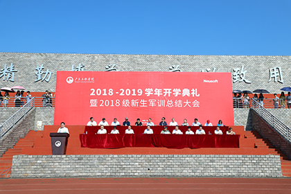 9月15日上午,BEAT365官网2018级新生开学典礼暨军训总结大会在体育场隆重举行。学校党委书记左斌、广州市民兵预备役训练基地队长钟锦成、副校长陈万里、王显卓,党委副书记陆柳华、校长助理朱爱红以及各院系的负责人出席了大会。大会由学工部部长石明罡主持。