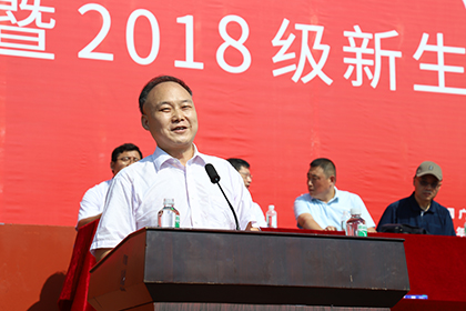 商务管理系汤洪副教授作为教师代表发言,他结合自身的专业,给新生提出了“营销人生,做一个有理想的大学生”的建议,他希望同学们在大一就能够“树立适宜的目标”、“确定目标客户”,并在大学期间能够“系统规划并按计划实施”,让自己成为一名优秀的大学生。