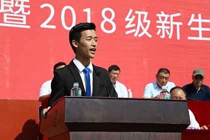 “希望用我四年的奋斗历程,给新生们一点建议”,本届华天奖获奖者之一,15级计算机系数字传媒技术3班的刘德威作为优秀学生代表发言,他鼓励同学们把学习当成是第一要务的同时,丰富学生生活,至少加入一个组织、一个公司中去,学会合作、沟通与交流,获得别样的成长。“希望同学们能够克服曾经的自己,踏上新的整成,在东软度过充实、愉快的大学生活。”