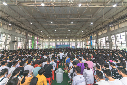 9月2日,学校校长杨利博士在体育馆为全体2019级本科新生上入学教育第一课。