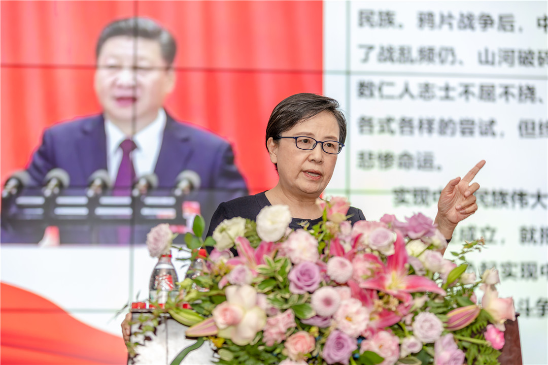 揭牌仪式后,鲁昕博士带来题为《马克思主义政治经济学理论始终绽放思想光芒——学习习近平新时代中国特色社会主义思想与实践》的专题报告。她从新中国70年取得的辉煌成就讲起,从《共产党宣言》、《资本论》、《政治经济学批判导言》、《哥达纲领批判》四本经典著作凝练了生产力与生产关系、经济基础与上层建筑关系、社会再生产原理、总需求与总供给平衡、劳动创造价值、资本有机构成、社会化大生产、社会产品分配等基本原理,结合我国40年改革开放实践,深刻阐述了其理论内涵和思想。